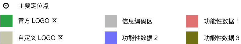 小程序碼有兩個 Logo 區(qū)域,分別是中間的自定義 Logo 區(qū)和右下角的官方 Logo 區(qū),灰色的區(qū)域是小程序碼的數(shù)據(jù)編碼區(qū),其它彩色區(qū)域是小程序碼的功能性數(shù)據(jù)(主要包括版本、糾錯等信息。